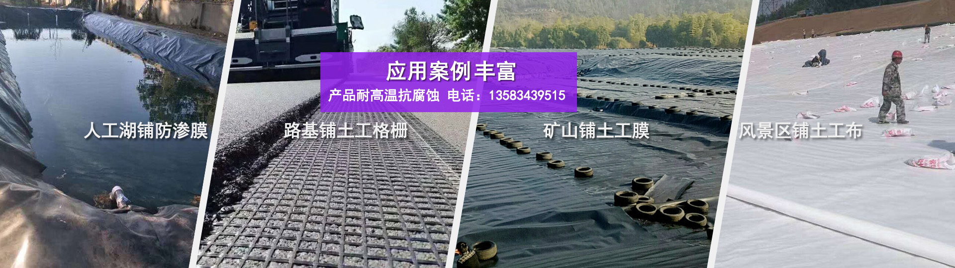 產(chǎn)品廣泛用于: 1.環(huán)保環(huán)衛(wèi)工程(如生活垃圾填埋場防滲、污水處理廠、有毒有害物質(zhì)填埋場、危險品倉庫、廠房等) 2.水利土木工程(河、湖、水庫、堤壩、堵漏、加固、水渠防滲、護坡等) 3.市政工程(地鐵、建筑物的地下工程和屋頂蓄水池、屋頂花園防滲、污水管道內(nèi)襯等) 4.園林綠化(人工湖、池塘、高爾夫球場的水塘底襯、護坡等) 5.石化(化工廠、煉油廠儲油池防滲防污、化學反應池、沉淀池的內(nèi)襯、二次襯層、藥廠基建防滲與隔離) 6.礦業(yè)(洗選池、堆浸池、堆灰場、尾礦壩防滲防污等) 7.交通設(shè)施工(公路的基礎(chǔ)加固、涵洞的防滲) 8.農(nóng)業(yè)(水庫、飲用水池、蓄水池防滲、灌溉系統(tǒng)的防滲) 9.水產(chǎn)養(yǎng)殖業(yè)(魚塘、蝦池的內(nèi)襯等)
